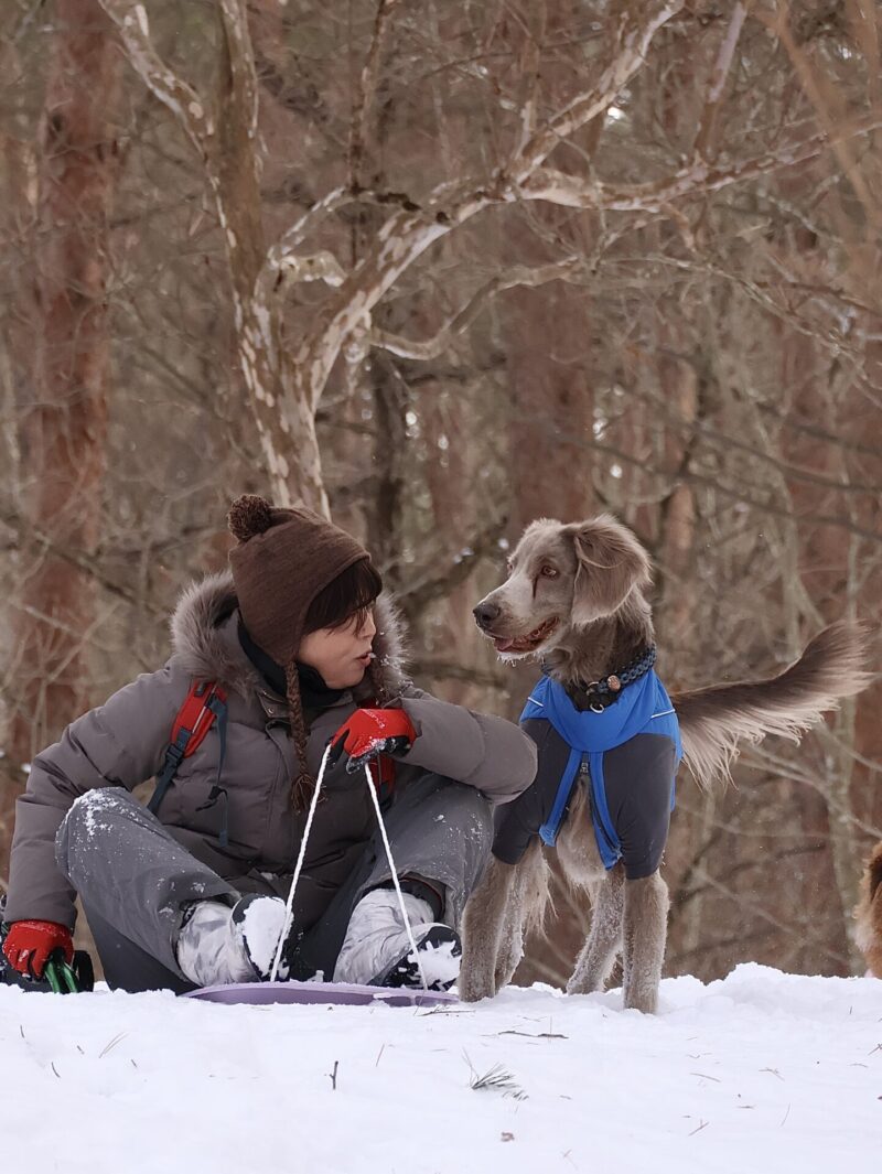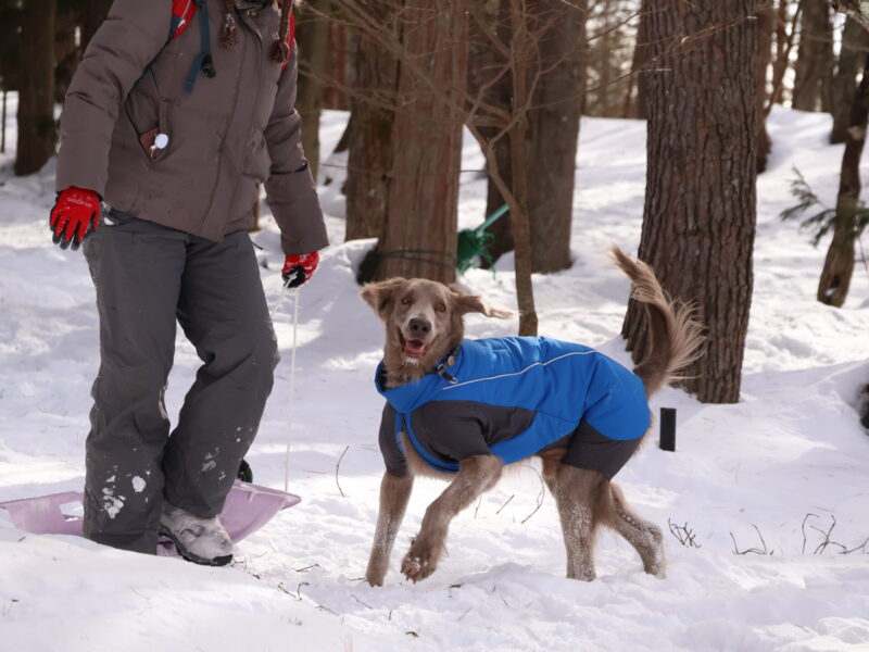 今回は犬用のスノースーツの試着も申し込み、